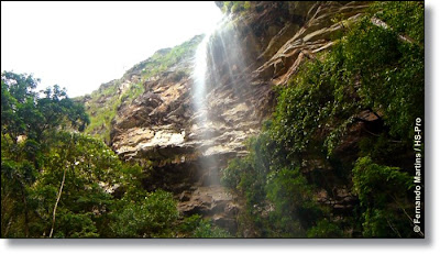 | Enfim, a vista geral da primeira atração do que nos aguardava: Cachoeira da Conquista. |
